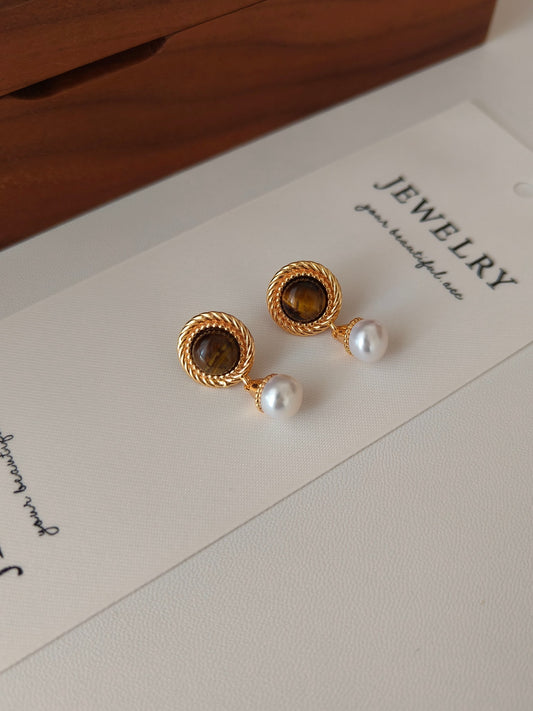 Tiger's Eye Pearl Earrings