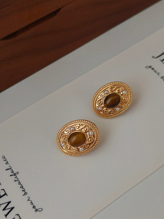 Vintage 18K Gold Tiger's Eye Earring